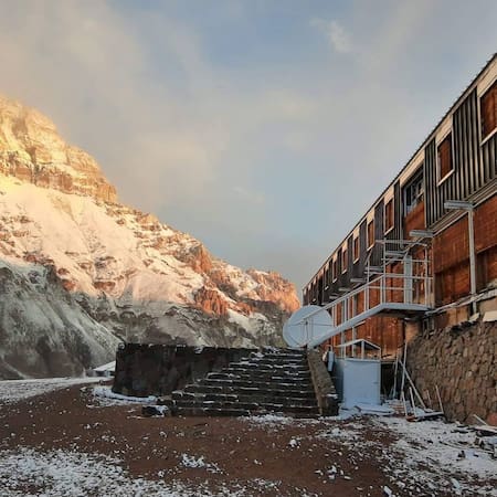 Ubicado en plena Cordillera de los Andes, dentro del Parque Provincial Aconcagua, el proyecto nació con un objetivo claro: brindar un espacio de descanso confortable para los montañistas que se preparaban para ascender al Aconcagua. La elección del lugar no pudo ser más extrema: a casi 4.370 metros sobre el nivel del mar, el edificio se transformó en una rareza absoluta dentro del turismo de montaña.