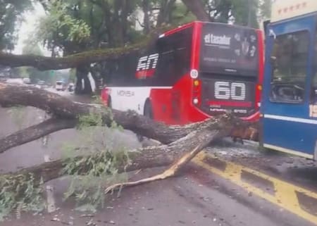 Un árbol cayó sobre dos colectivos en Belgrano: hay cuatro heridos