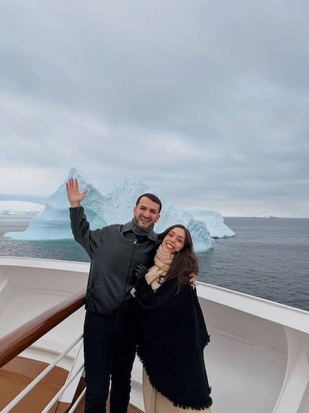 Pereyra se encuentra viajando por la región junto a su pareja y compañera artística, la cantante Fiorella Guidi. La travesía los llevó primero a la Antártida y luego a las Malvinas, donde decidieron registrar este instante tan especial.