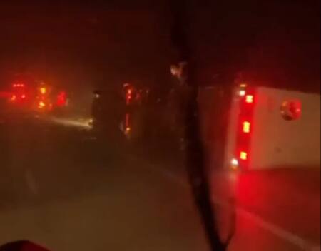Según informó el medio local Aire Digital, el siniestro ocurrió a la altura del kilómetro 389 y las primeras hipótesis indican que los vuelcos se produjeron por las fuertes ráfagas de viento. Allí, los conductores que circulaban por la autopista registraron en video el momento posterior al temporal, donde se observaban los camiones con acoplados volcados sobre el asfalto y con las luces encendidas.