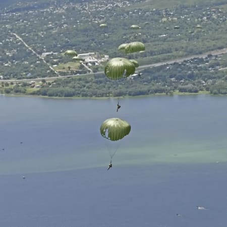 Uno de los hitos de la semana fue el lanzamiento de paracaidistas sobre el Lago San Roque, actividad ejecutada con apoyo de la Compañía de Ingenieros Paracaidistas 4, unidad con asiento en esa región. Este tipo de prácticas exige una coordinación precisa y fortalece la capacidad de inserción en ambientes complejos.