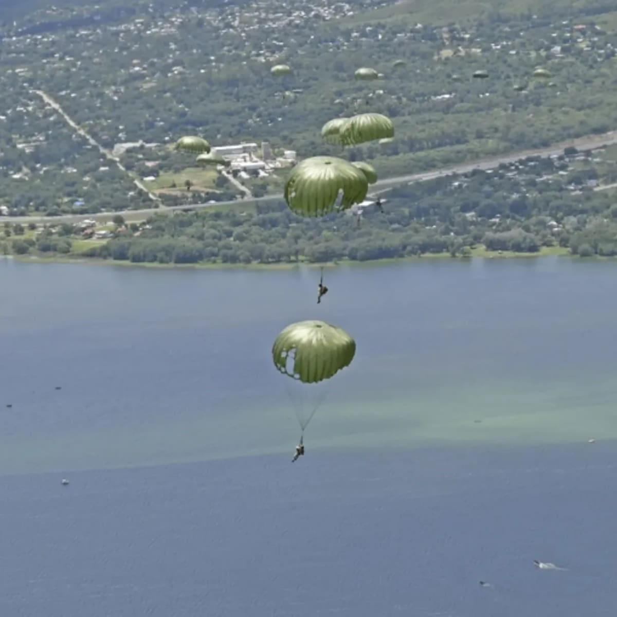 Uno de los hitos de la semana fue el lanzamiento de paracaidistas sobre el Lago San Roque, actividad ejecutada con apoyo de la Compañía de Ingenieros Paracaidistas 4, unidad con asiento en esa región. Este tipo de prácticas exige una coordinación precisa y fortalece la capacidad de inserción en ambientes complejos.