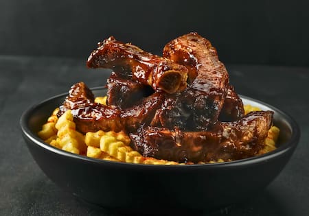 Nueve costillitas de cerdo a las brasas, bañadas en una barbacoa dulce y acompañadas por papas rellenas y una fresca ensalada coleslaw convierten a este plato en una de las grandes especialidades de la casa. ¿Cuánto cuesta y por qué es uno de los más elegidos?