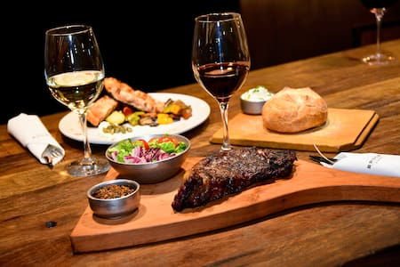 La propuesta gastronómica de Bruce ofrece una carta amplia y diversa, de inspiración americana contemporánea, donde las carnes a las brasas y al ahumador ocupan un rol protagónico.