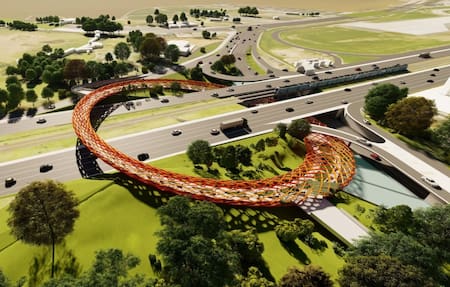 La extensa obra se encontrará bajo la calle La Pampa, la avenida Leopoldo Lugones, la autopista Illia y las vías del Belgrano Norte; y tendrá como objetivo mejorar la conexión entre la Ciudad, el Aeroparque y la Costanera. Se trata de un túnel de doble mano para vehículos y un puente peatonal y para ciclistas en forma de corona, tendrá un diámetro de 140 metros y un mirador panorámico. Para el que pretende ser un nuevo ícono urbano para la Ciudad se intervendrán 10 mil metros cuadros y se hará una inversión que superará los $50 mil millones.