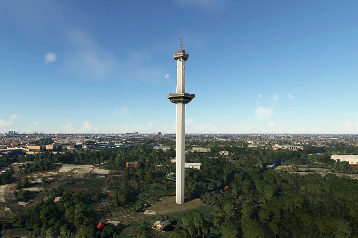 Fabricada por la firma austríaca Waagner-Biro y montada entre 1980 y 1982, la torre se erige sobre un basamento subterráneo de 30 metros con pilotes de hormigón armado. Su plataforma más alta, a 176 metros, ofrecía vistas únicas del área metropolitana, mientras que los niveles inferiores (a 125 y 120 metros) alimentaron mitos urbanos, como el de una supuesta confitería giratoria que nunca existió en los planos originales.