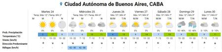 Antes de las ya mencionadas lluvias, el sábado 28 estará entre los 7 y 13 grados, junto con un cielo parcialmente nublado a lo largo de toda la jornada en la Ciudad de Buenos Aires.