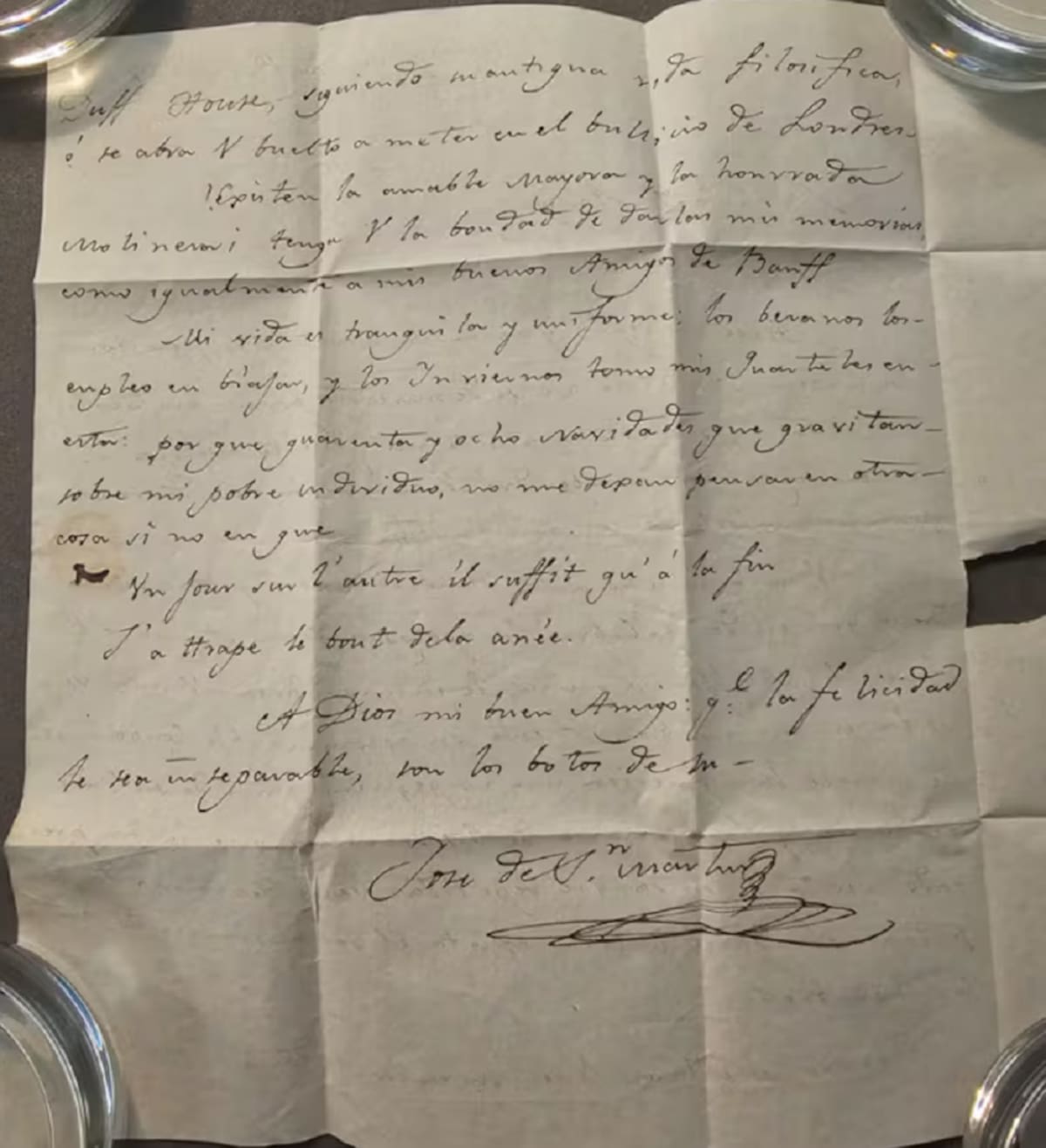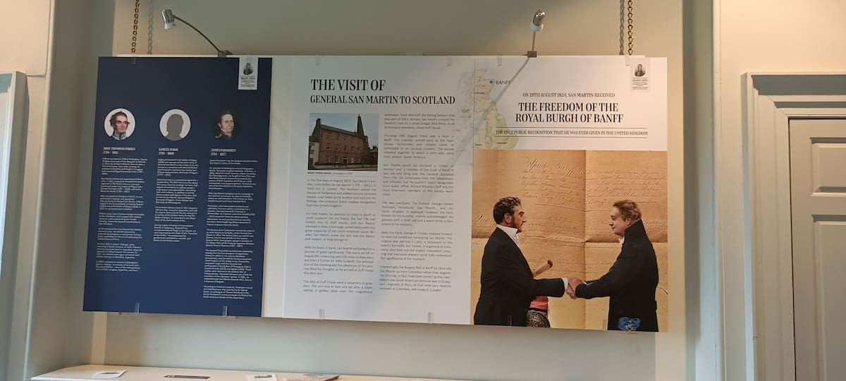 Entre los documentos más destacados se encuentra una carta escrita por San Martín en Bruselas, fechada en marzo de 1827, en la que presenta al General William Miller y envía cálidos saludos al pueblo de Banff. Este documento iba a ser la pieza central de la exposición Banff 1824, originalmente programada para inaugurarse en agosto 2025 en el ahora extinto Instituto Nacional Sanmartiniano (INS) en Buenos Aires.