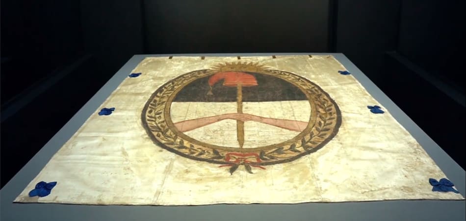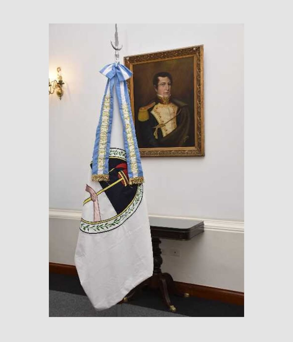 El 25 de mayo de 1813, Belgrano entregó esta bandera al Cabildo de San Salvador de Jujuy como gesto de gratitud por el sacrificio y coraje del pueblo jujeño durante el Éxodo, sumado a las batallas de Tucumán y Salta.