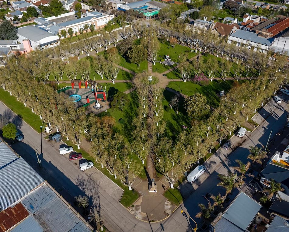 Esta estatua piranense está en el fondo del pueblo porque este creció desde su actual “fondo” hacia su actual “frente” y la planificación se hizo en función de la estación del ferrocarril. Para verla “en vivo” hay que recorrer las seis cuadras y media que van desde la ruta hasta la plaza Libertad.