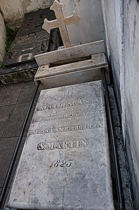 Llegó a la capital con la idea de buscar a su hija para marchar a Europa, antes colocó una placa en la tumba de su difunta esposa: “Aquí yace Remedios de Escalada, esposa y amiga del general San Martín”.
