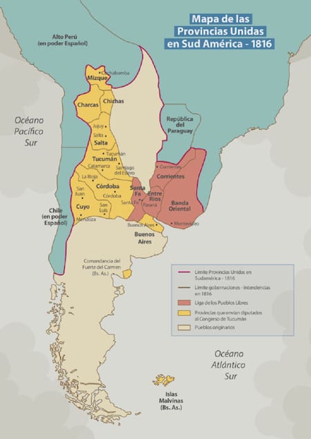 Sin la Patagonia ni varias zonas claves: el mapa de Argentina con solo las 13 provincias que declararon la independencia en 1816