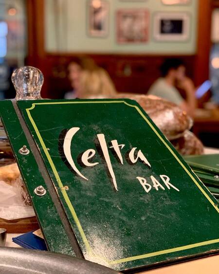 El Bar Celta tiene entrada por la ochava con puertas doble hoja, más otras dos sobre cada calle lateral, mesas y sillas de madera, ventanas guillotina, piso de pinotea y, dicen, el mejor responsable de cafés en Buenos Aires, Osvaldo.