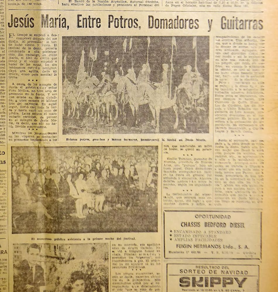 El Festival Nacional de Doma y Folklore de Jesús María es un evento de música folclórica y jineteada, que convoca a intérpretes de música folklórica argentina y jinetes que realizan destrezas gauchas a caballo. Cada año, desde hace seis décadas, la tradición se repite.
