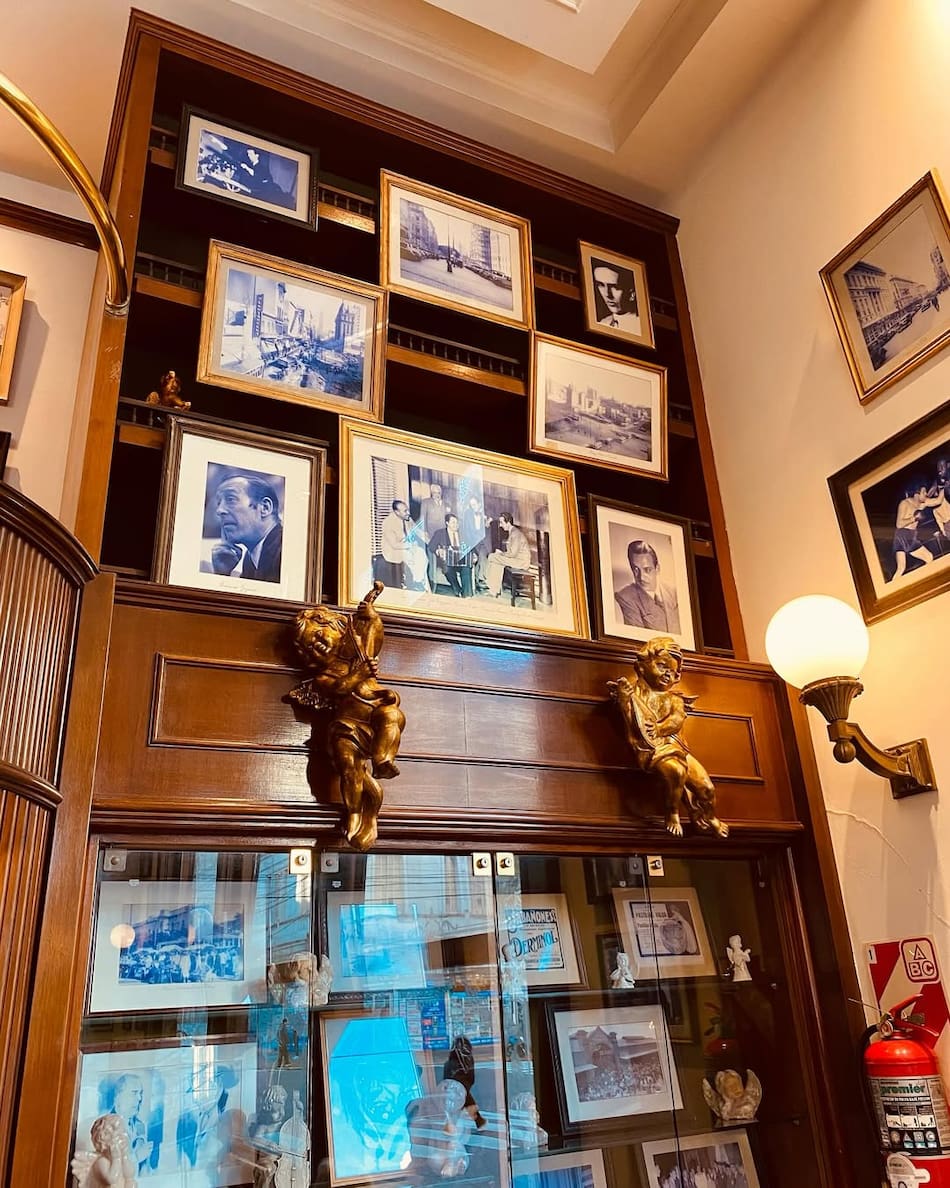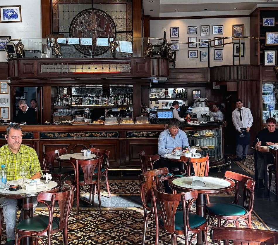 Su decoración sobria y elegante con madera oscura, cristales, vitraux, bronces y mosaicos calcáreos le otorgan su tradicional personalidad. Hoy, además de tomar un café o comer algún plato típico, se pueden disfrutar shows de tango.