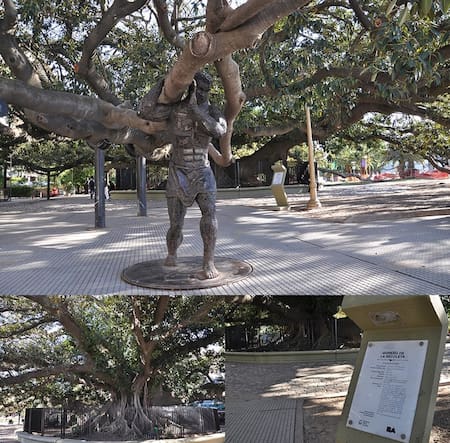 Desde 2014, sus extensas ramas se apoyan en “Atlas”, la escultura creada por Joaquín Arbiza Brianza a partir de autopartes.