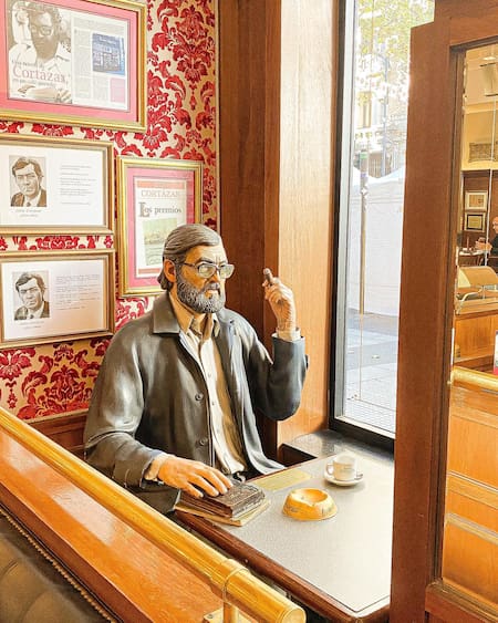 A pocas estaciones de subte de allí, sobre la emblemática Avenida de Mayo, se encuentra London City, quizás el café más ligado a su proceso creativo. En una de sus mesas, con vista al ritmo incesante del centro porteño, Cortázar escribió parte de Los premios, su primera novela publicada. El local conserva la estética tradicional de los bares notables, con iluminación cálida y el murmullo constante que acompañó a tantas generaciones de escritores. En su interior, las fotos del autor recuerdan ese momento decisivo en el que la literatura y la ciudad convergieron.