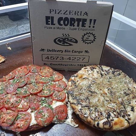 El menú de El Corte es sencillo y fiel a la tradición porteña: muzzarella, napolitana, calabresa, jamón y morrones, fugazza con muzza y, por supuesto, la estrella: la fugazzeta rellena. También ofrecen empanadas de carne, pollo y jamón y queso, siempre bajo la misma premisa: sabor honesto, porciones generosas y precios accesibles.