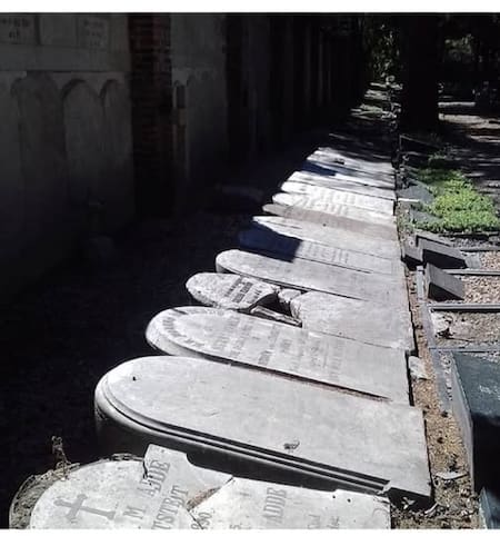 Pero en la mayoría de los casos, los cuerpos ya no acompañan las lápidas. Algunas sepulturas fueron vaciadas sin registro; otras se perdieron durante el colapso sanitario de las epidemias; varias nunca pudieron identificarse. La pared, así, funciona como un archivo de piedra, un mosaico de memorias dispersas.