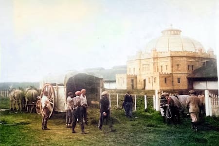 La historia comienza en la etapa final de la Conquista del Desierto, cuando el hacendado inglés John Alexander (o Juan Alejandro) Brown adquirió unas 60.000 hectáreas de tierras recién fraccionadas en lo que entonces era el “lejano oeste” bonaerense. Allí fundó La Marión hacia 1884, una estancia que retomaba la estética de las mansiones rurales de Inglaterra, pero en medio de la planicie argentina, cerca de la estación Volta.