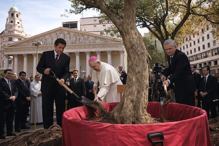 El árbol que pasa desapercibido en Plaza de Mayo y fue plantado por el papa Francisco