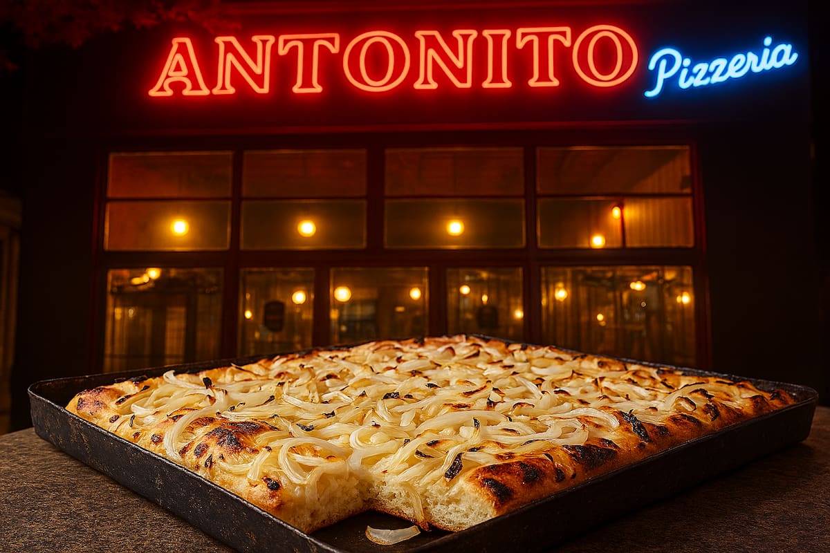 Hoy, Antonito vuelve con una carta breve y contundente: mozzarella generosa, media masa como manda la tradición, moscato frío y porciones que se comen de pie o en mesa, como siempre se hizo en Buenos Aires. Nada de reinterpretaciones forzadas. Nada de modas pasajeras.