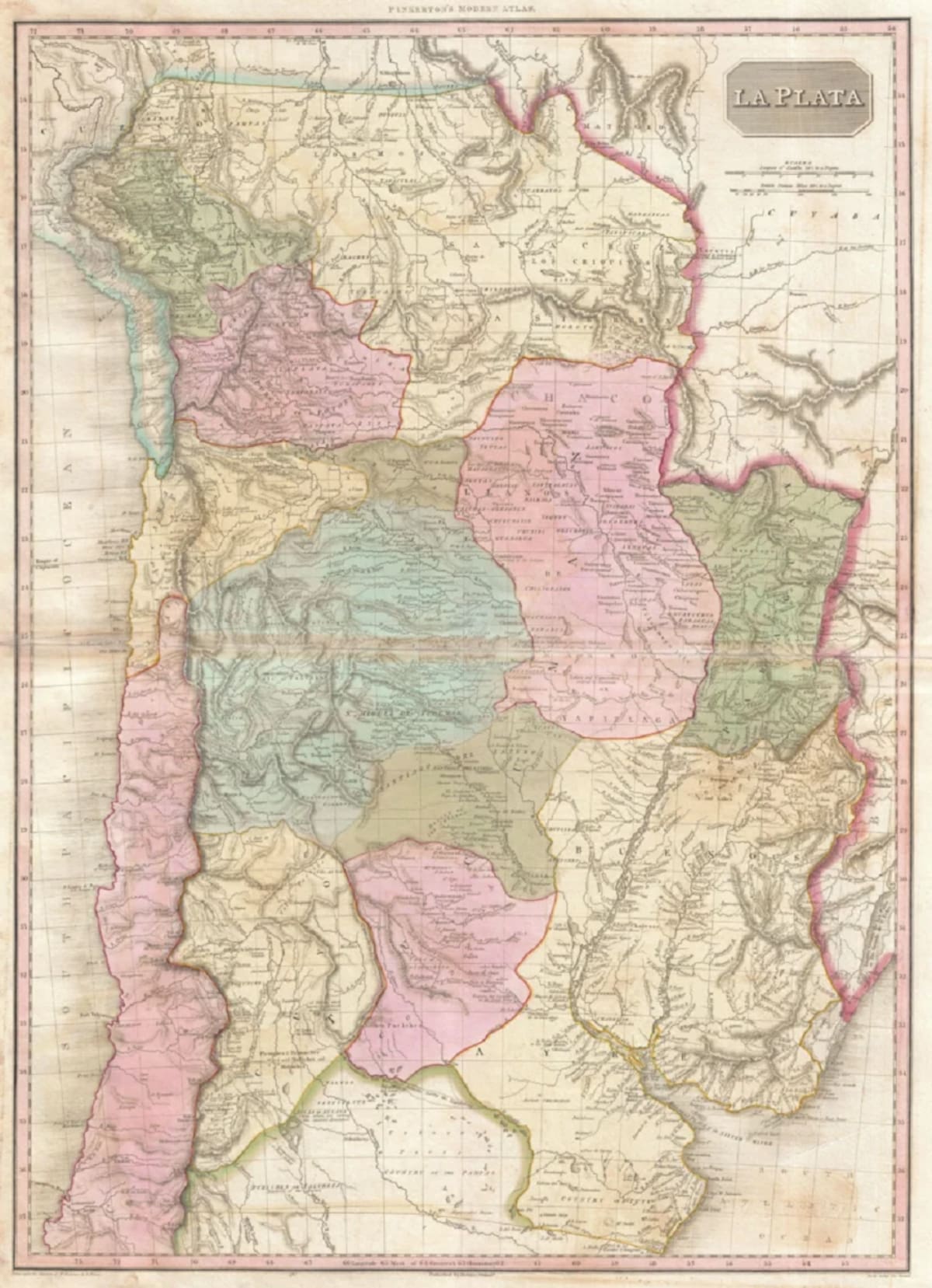 No existía todavía un Estado nacional consolidado. Las provincias mantenían fuertes autonomías y el concepto de “Argentina” como país aún no estaba plenamente definido. El mapa de Pinkerton captura ese momento de transición, donde la identidad nacional estaba en disputa y las fronteras internas eran tan inestables como las externas.