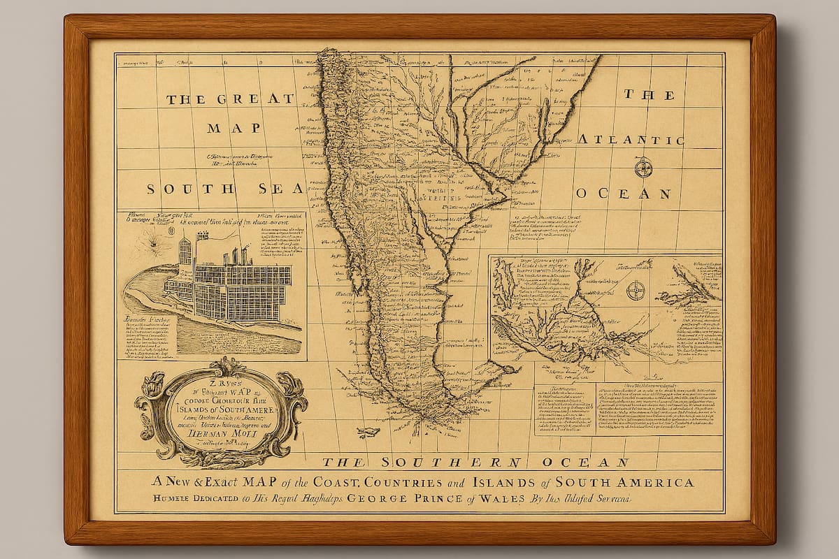 El interior del territorio, en cambio, permanecía vacío en los mapas: un espacio blanco que reflejaba el desconocimiento total sobre los pueblos originarios, las montañas, las llanuras y los climas. No era una ausencia casual, sino una advertencia visual de que aún quedaba mucho por descubrir.
