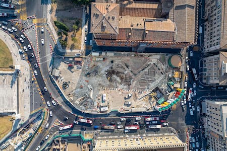 La intervención en Plaza Venecia forma parte de los trabajos para completar la tercera línea del metro de Roma, en construcción desde 2007. Esta línea, conocida como la línea C, cruzará la ciudad desde el noroeste hasta el sureste, atravesando el centro histórico de la capital italiana.
