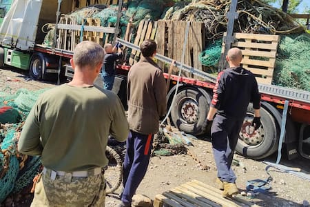 Las redes son donadas por pescadores de Dinamarca y los Países Bajos, y transportadas por conductores ucranianos, según explicó Vira Shvartskop, una voluntaria encargada de coordinar esta iniciativa.