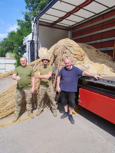 En ese sentido, toneladas de redes de pesca, donadas por pescadores europeos (principalmente de Dinamarca y Países Bajos), son utilizadas por las fuerzas de defensa de Ucrania a fin de proteger rutas logísticas clave de los drones kamikaze de Rusia.