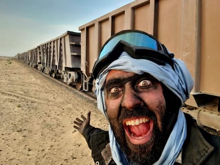 La revancha llegó en 2024, cuando decidió subir al famoso tren del mineral de hierro, considerado uno de los más largos y peligrosos del mundo dado que atraviesa el Sahara en condiciones extremas y porque, debido al material que traslada, corre el riesgo de ser asaltado. Nicolás tuvo que buscarlo preguntando por los callejones, entre vendedores ambulantes, con su rostro cubierto por un turbante y hablando un árabe rudimentario, ya que el tren no tiene horarios fijos.
