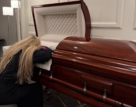 En las impactantes imágenes, se puede ver a Erika inclinada sobre el ataúd abierto de Charlie, tomando su mano y susurrándole palabras de amor.