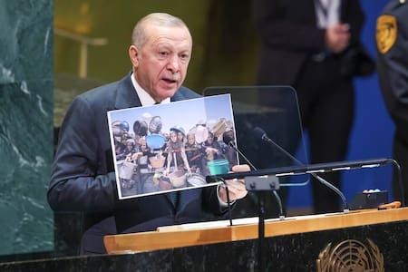Asimismo, aplaudió la postura de “todos aquellos en el mundo que, sin armas, salieron a la calle” para protestar y “defender a Palestina”. “A ellos les digo: muchas gracias”, sostuvo Erdogan, quien mostró su rechazo al hecho de que el presidente de la Autoridad Palestina, Mahmud Abbas, no vaya a estar presente en el debate de la Asamblea General.