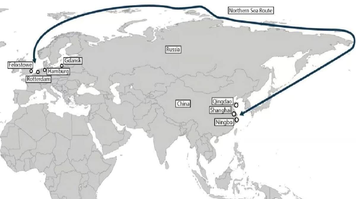 El trayecto aprovecha la Ruta del Mar del Norte (NSR), que atraviesa el Ártico, ofreciendo una vía más rápida y segura, con menor riesgo de piratería o bloqueos políticos.