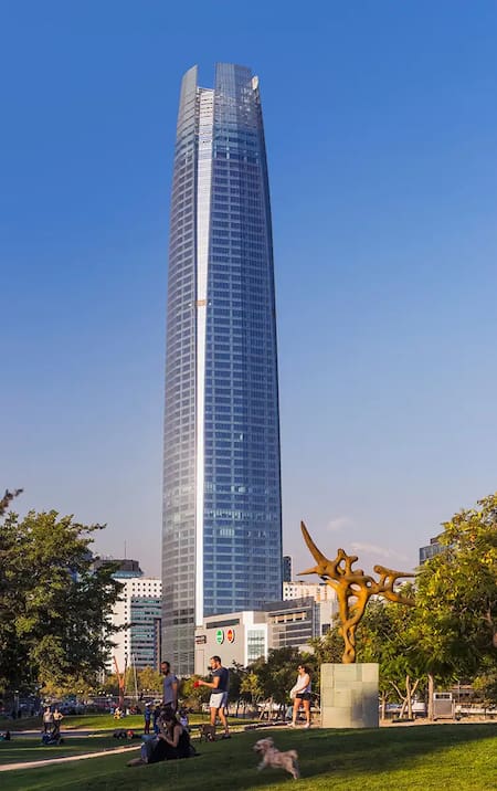 Se trata de la Gran Torre Costanera, ubicada en Santiago de Chile. Inaugurada oficialmente en 2014, su presencia modificó por completo el perfil arquitectónico de la ciudad. Su construcción representó un verdadero desafío de ingeniería: gracias a la combinación de concreto reforzado y acero estructural, el edificio fue diseñado para mantener su estabilidad ante sismos y fuertes vientos, asegurando así su resistencia y durabilidad.