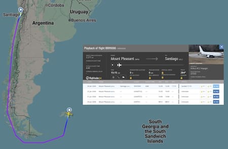 La aeronave fue vista en instalaciones militares vinculadas a la Fuerza Aérea de Chile. Ese viaje, sin embargo, fue parte de una operación más amplia: días antes, el mismo avión había despegado varias veces desde Monte Agradable sin informar públicamente su destino. Esos movimientos coincidieron con la actividad de otro avión militar británico, un Airbus A400M, que estuvo volando durante largos períodos sobre la Península Antártica. Incluso pasó por una zona cercana a una base argentina, muy próxima a una base británica en la región.