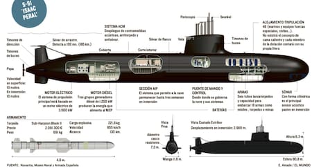 Con una eslora de 80 metros y un desplazamiento de 3.000 toneladas en inmersión, su principal innovación es el Sistema de Propulsión Independiente del Aire (AIP), que le permite permanecer sumergido durante semanas sin necesidad de salir a la superficie, mejorando su sigilo y operatividad.