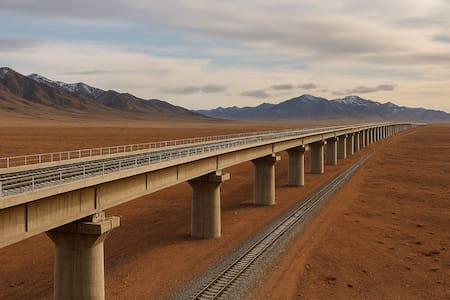 La obra, concebida como una gigantesca línea férrea elevada sobre pilares de hormigón, conectará la ciudad fronteriza de Erenhot con Mongolia y continuará hacia Rusia. Su objetivo es claro: crear una ruta directa y eficiente para transportar materias primas clave desde las vastas reservas mineras mongolas hacia el sistema industrial chino.