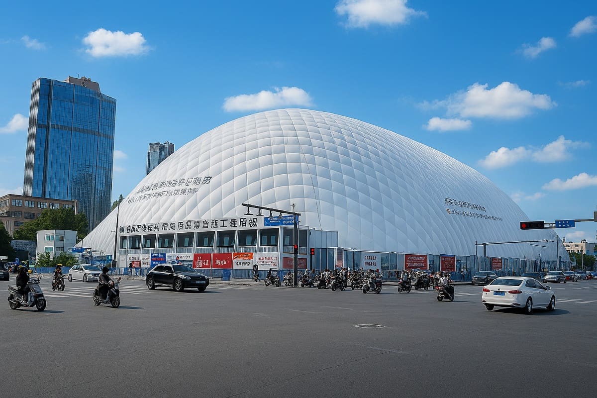 El caso que más atención generó es el de Jinan, capital de la provincia de Shandong, donde se instaló una cúpula inflable de unos 50 metros de altura que cubre aproximadamente 20.000 metros cuadrados de superficie.