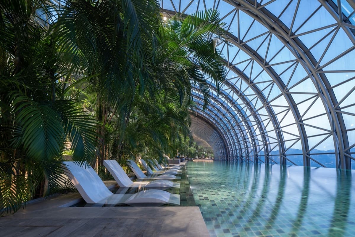 El espacio también incluye el “Jardín del cielo”, áreas verdes elevadas, y una amplia oferta gastronómica con vistas panorámicas. Para un público selecto, el complejo ofrece un club privado con servicios premium, que incluye dos piscinas infinitas de 50 metros.