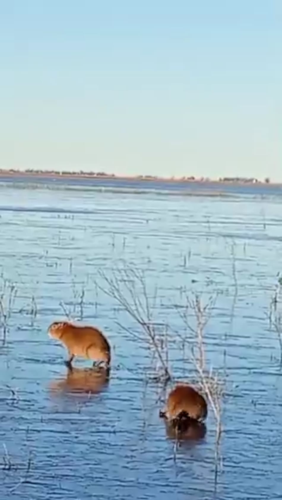 Carpinchos sobre hielo: el video viral que los muestra caminando sobre la laguna congelada en los Esteros del Iberá