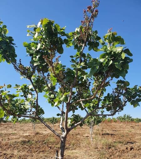 Este árbol tiene varias particularidades. Por ejemplo, es dioico, lo que significa que existen ejemplares macho y hembra. Solo las plantas femeninas producen pistachos, pero requieren de la presencia de un macho cerca para que se produzca la polinización, que se da principalmente por el viento.