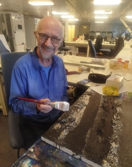 “Cuando me enteré, por Daniel Lauretta (biólogo y líder de la expedición), que había sido mi tesista doctoral, traté de subir como científico pero para ello debía pasar pruebas de resistencia física. Entonces me resigné a verlo por la pantalla. Pero después leímos en la “letra chica” que existía la figura de Artista a bordo, y postulé. En un principio no gané el concurso, pero tres semanas antes de zarpar el barco me llegó un mensaje diciendo felicitaciones ha sido nombrado Artist At Sea”, cuenta Pablo. Sin pensarlo dos veces, preparó pinceles y lienzos y pinturas y se embarcó a esta aventura que le permitió unir sus dos pasiones: la ciencia y el arte.
