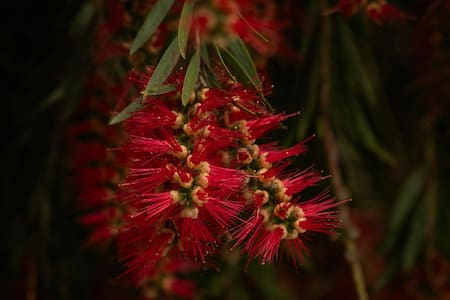 También conocido como Limpiatubos llorón. Puede llegar a medir entre 4 y 6 metros de altura. Se presenta imponente, con unas hojas de un verde intenso y creando grupitos de maravillosas flores en su copa que tienen un destacado color rojo.