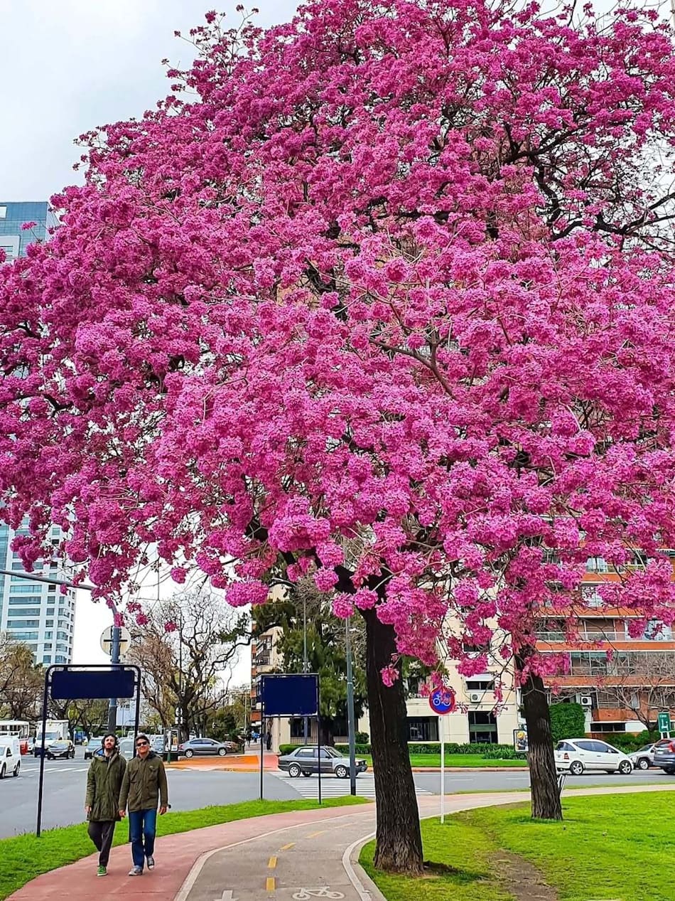 Menos conocidos que sus parientes los jacarandás, los lapachos no se quedan atrás en belleza. Su floración comienza cuando el invierno empieza a despedirse y alcanza su punto más alto durante la primavera, cubriendo calles y parques con un tapiz rosado.