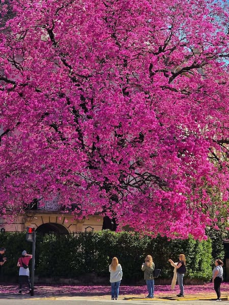 Lila, rosa, rojo y amarillo son algunos de los colores que iluminan Buenos Aires en esta época del año. Entre todas las especies que llenan de vida la ciudad, destacan los imponentes lapachos, que comienzan a florecer y se han convertido en uno de los símbolos más emblemáticos de la zona, además de ser, sin duda, de los más fotografiados.