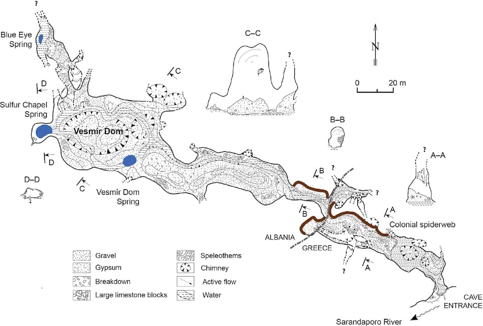 Sulfur Cave no solo alberga esta supercolonia de arañas, sino también otros invertebrados adaptados a las duras condiciones sulfídicas, como colémbolos, pseudoscorpiones y especies ciegas o sin pigmento. Sin embargo, su ubicación fronteriza entre Albania y Grecia complica su preservación.
