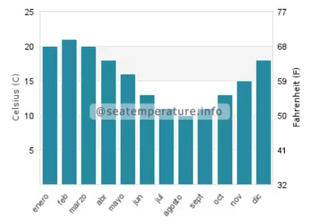 La temporada óptima para entrar a nadar en Mar del Plata se extiende tradicionalmente de enero a marzo. Durante estos meses, la temperatura media del agua en verano alcanza los 19.8 grados y generalmente no baja de los 20 grados, umbral considerado adecuado para nadar cómodamente.