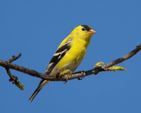 También conocido como jilguero amarillo o botoncito de oro, el macho se distingue por su vibrante plumaje: una combinación de amarillo intenso en el pecho, garganta y vientre, con una frente que tiende al amarillo anaranjado. La hembra, en cambio, presenta tonos mucho más apagados, sin la característica coloración dorada del macho, lo que evidencia un marcado dimorfismo sexual.